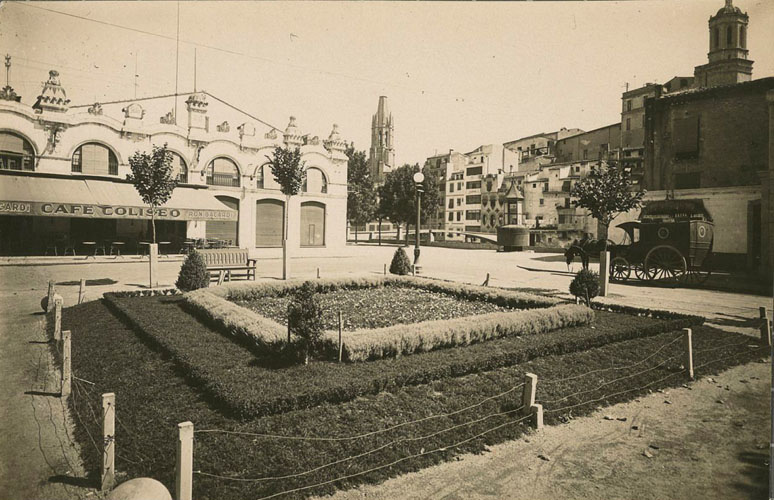 (Veure la imatge sencera) - El quiosc de begudes de la Rambla Verdaguer des d'un punt elevat. 1910-1920. Josep Thomas Bigas. CRDI - Ajuntament de Girona. A la dècada dels anys 20 del segle XX varen proliferar a diversos indrets de la ciutat. El 1923 es va concedir autorització a Josep Soler de Estor per instal·lar un quiosc de refrescs a la plaça Calvet i Rubalcaba (DdGAN, 22/6/1923), i també, uns mesos més tard, un altre al mateix peticionari al passeig de Sant Francesc, a tocar l'antic convent de Sant Francesc de Paula (DdGAN, 21/10/1923).