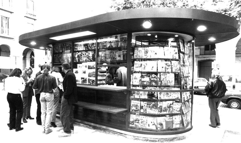 (Ampliar) - Uniformitat dels quioscos de Girona. 'Diari de Girona'. 14/1/1988. A la dècada dels anys 80 l'Ajuntament va establir un altre model de quiosc, al que es varen adaptar el ja existents, i va servir de model pels de nova creació. Entre els primers, hi havia els de la plaça de la Independència, a plaça Catalunya, Jaume I o la Rambla de la Llibertat. I entre els segons, el de l'antiga estació d'autobusos o el de davant l'antiga estació del tren d'Olot.