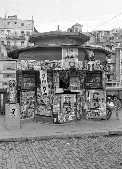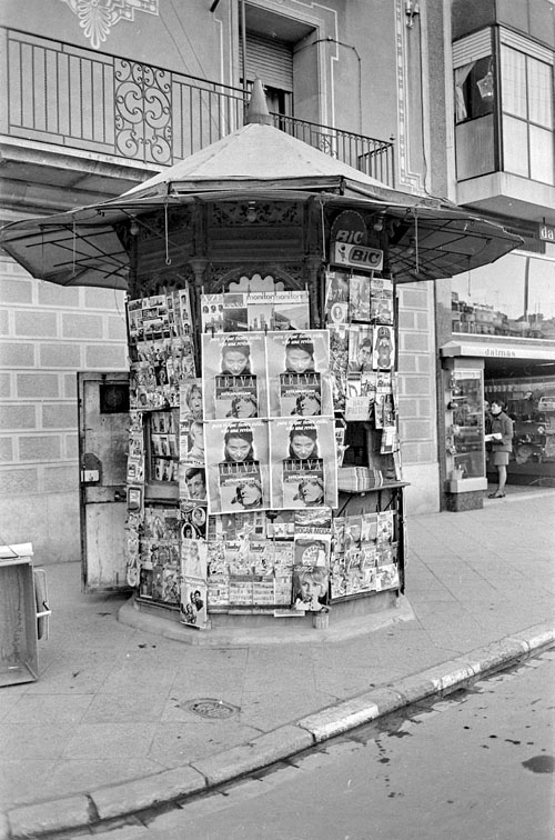 (Ampliar) - Quiosc de periòdics al passeig Josep Canalejas. 1968. Miquel Morillo Gallego. CRDI - Ajuntament de Girona.