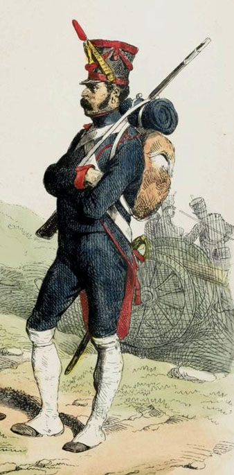 ![]() - Artillerie á pied. Uniforme napoleònic de la Guerra del Francès. 1809. Bibliothèque Nationale de France. ![]()