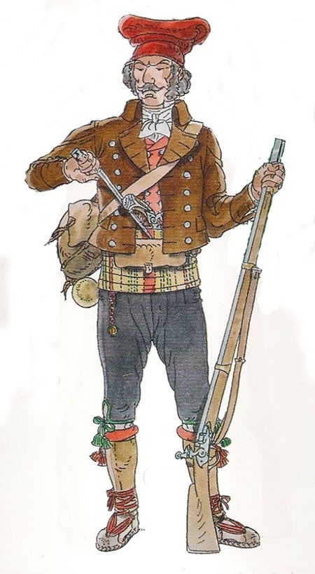 (Veure'l sencer) - Combatent del cos de reserva i Sometent. Girona. 1809. Dibuix de Francesc Riart.