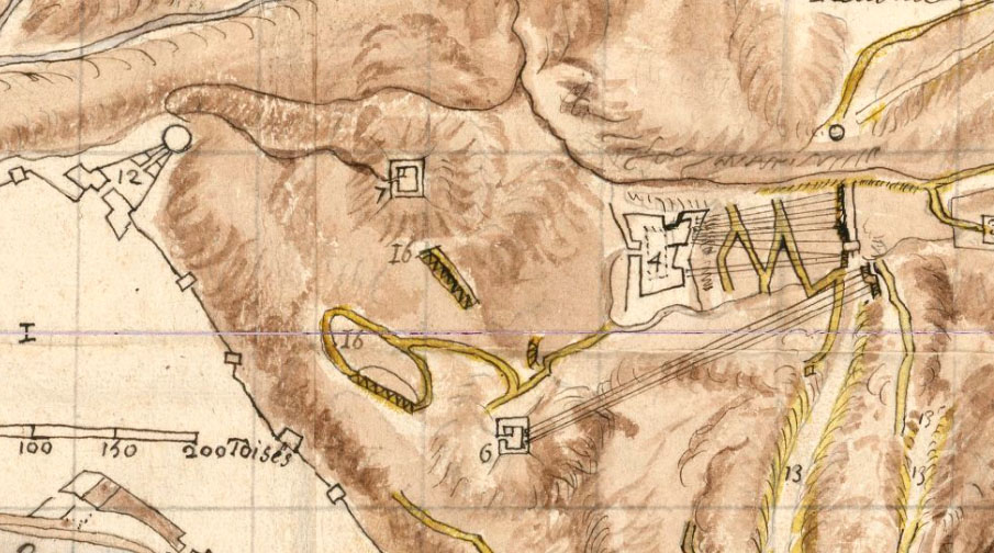 Les construccions defensives de les Pedreres varen ser completades el 1708 amb el fort dels Captxins, el més gran de la ciutat i l'únic que s'aconsegueix construir dels projectes i la celebració de grans festes, amb motiu de la benedicció de l'estendard del Regiment dels Espanyols de Girona, festes en les quals predicà un sermó patriòtic Fra Antoni de la Concepció. ![]() (Ampliar) - Detall de "Plan de l'enceinte fortifiée de Gironne". 1710. Bibliothèque Nationale de France. ![]() (Ampliar) - Detall de "Plan de la ville de Gironne ses forts et redouttes, attaques et tranchées". 1694. Amb el número 7 s'indica el reducte i amb el 16 s'indiquen 'batteries qui n'ont poivu tiré'. Bibliothèque Nationale de France. ![]() (Ampliar) - Detall de "Plan de Gironne et des attaques qui y furent faites pendant le siège de 1694, par monseigneur le mareschal duc de Noailles". 1694. Bibliothèque Nationale de France. ![]() (Ampliar) - Detall de "Plan des attaques de Gironne, depuis le 22 décembre que la tranchée a esté ouverte jusqu'au 23 janvier 1711 que la place s'est rendu". 1711. Bibliothèque Nationale de France. Notes (1) - Un reducte és una fortificació campal, relativament petita, i completament tancada, destinada a refugi o fortificació per a la defensa. Deriva de la paraula llatina reductus, que significa "apartat, retirat". Els reductes adopten diverses formes i mides, tot i que ordinàriament tenen diversos costats i consten de parapets i una o més banquetes. Es construeixen els reductes regularment en les línies de circumval·lació i al seu voltant i també en els retorns de la trinxera i el fossat. - Tornar al textBibliografia.