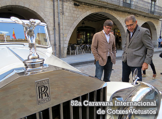 Síntesi: El divendres 9 d'octubre 2015 ha tingut lloc a la plaça del vi la concentració de vehicles participants en la 52ena edició de la Caravana Internacional de Cotxes Vetustos Girona - Costa Brava. L'espectacle dels automòvils participants ha cridat l'atenció de molta gent, que es fotografiava al costat d'un Roll Royce blanc, baixant d'un Routemaster, un autobús anglès vermell de dues plantes, o simplement tafanejar l'interior i els motors d'aquestes joies sobre rodes.
