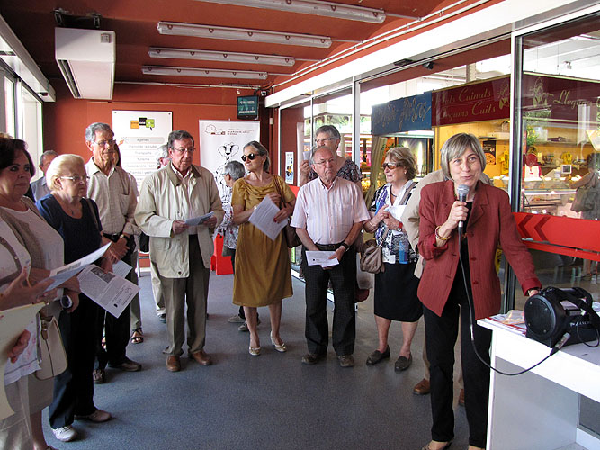 Síntesi: Emmarcat en els actes amb motiu del centenari de l'escriptor, l'associació Amics de la UNESCO de Girona amb la col·laboració de l'associació de comerciants del Mercat del Lleó, organitza mensualment una proposta l'objectiu de la qual és apropar l'escriptor al gran públic, a partir del llibre de Salvador Espriu "Les roques i el mar, el blau". El dimarts 10 de juny 2014 es va presentar el treball compost per un text d'Eusebi Ayensa i una il·lustració de Rosa Dachs sobre el capítol Una nimfa del llibre de Salvador Espriu.