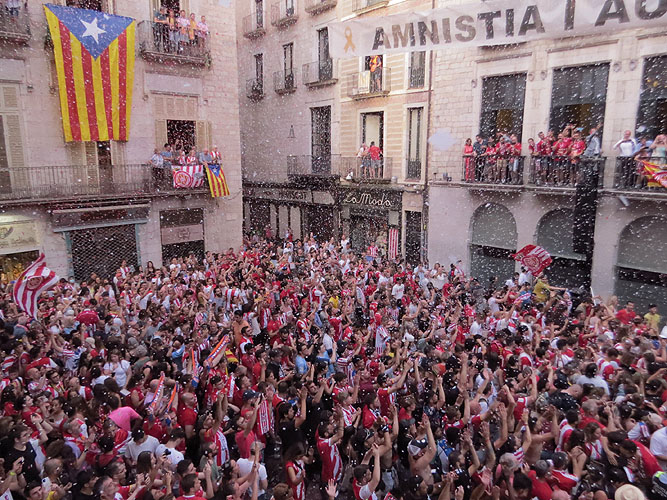 Síntesi: El dilluns 20 de juny de 2022 va tenir lloc, la celebració conjunta de l'ascens de dos equips gironins: el Girona FC a primera divisió i el Bàsquet Girona a l'ACB. La rua de celebració va començar a l'estadi de Montilivi, on un autobús amb els jugadors blanc-i-vermells va anar cap al pavelló de Fontajau, on s'hi va afegir el del Bàsquet Girona. Tots dos varen desfilar pel centre de Girona fins a la plaça del Vi, on varen ser rebuts per les autoritats a l'ajuntament. Els dos equips es dirigiren als aficionats des del balcó de l'Ajuntament. A continuació, la celebraci&oacuite; va continuar a Montilivi, on la festa es va allargar fins a la mitjanit.