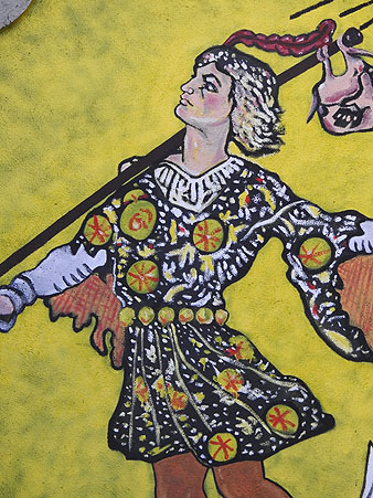 Síntesi: El 1987, Joan Anton Palacios 'Palau' i Lluís Hereu varen pintar a l'accés a les escales que comuniquen el carrer Nou del Teatre amb el carrer de Sant Josep, un mural que representava un Boig del Tarot marsellés, una figura humana de mida superior a la natural. Amb els anys, la pintura es va anar deslluïnt fins a desaparèixer del tot. Amb el suport de la regidoria de Cultura de l'Ajuntament de Girona, del divendres 18 al dilluns 21 d'octubre de 2024, els artistes Pep Admetlla i Jordi Amagat han refet el mural, el "Boig del carrer dels Torrats".