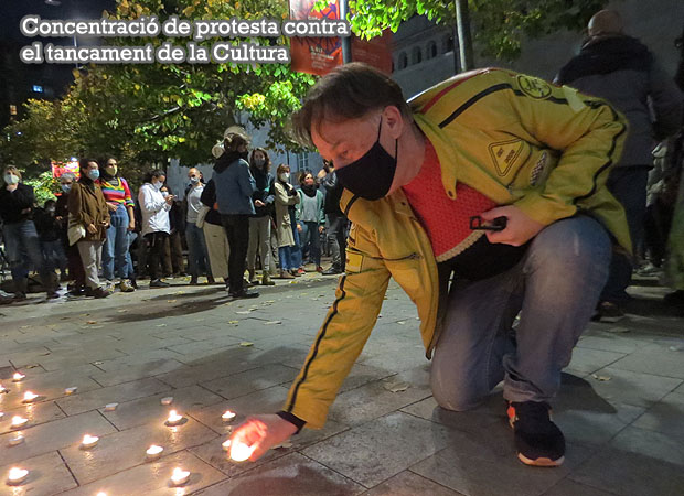 El dissabte 31 d'octubre de 2020, 150 professionals de la Cultura varen fer una concentració de protesta davant una de les instal·lacions culturals de Girona, la Casa de Cultura. A la protesta reclamaven ajudes reals davant la crisi provocada per la pandèmia, que ha abocat al tancament de teatres i auditoris. Els concentrats varen recordar en un manifest que són un sector essencial i varen encendre desenes d'espelmes davant de la Casa de Cultura de Girona. El diverses pancartes es podia llegir lemes com 'No només del pa viu l'home' o 'No morirem de covid, morirem de gana'. En el manifest també es va demanar que la Cultura sigui declarada un "bé de primera necessitat".