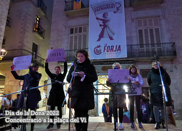 El vespre del dimarts 8 de març de 2022, per commemorar el Dia de la Dona, es va fer una concentració a la plaça del Vi, convocada per la Plataforma Feminista Gironina, on es va donar veu a una desena de dones, i històries personals, per reclamar que s'erradiquin les violències i s'assoleixi la igualtat real. La concentració també va comptar amb diverses actuacions musicals.