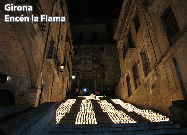 El divendres 15 de març 2013, Girona per la Independència, de l'Assemblea Nacional Catalana, va organitzar l'encesa d'una estelada formada per més de 3.000 espelmes, a les escales de la pujada de Sant Domènech, que varen quedar il·luminades exclusivament pel foc de les espelmes.