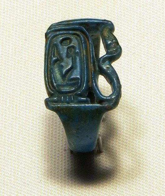 (Ampliar) - Anell del faraó Amenhotep III. Faiança, Probablement Dinastia XVIII, regnat d'Amenhotep III, Ca. 1390-1352 aC.