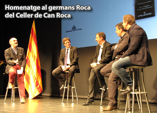 Síntesi: El 29 d'abril 2013 la revista Restaurant proclamava a Londres el restaurant El Celler de Can Roca com el millor del món, després de dos anys d'estar situat al segon lloc. Amb un Teatre Municipal amb més de cinc-centes persones, s'els va retre homenatge i els va felicitar en un acte, presentat per l'escriptor Josep Maria Fonalleras, que es va iniciar amb un vídeo que repassava en tres minuts la vida dels tres homenatjats, des de la seva infància al restaurant familiar, regentat pels seus pares, fins al reconeixement internacional atorgat. També es van passar missatges de felicitació del periodista Joaquim M. Puyal, l'entrenador de futbol Josep Guardiola i el cuiner Ferran Adrià. L'alcalde de la ciutat, Carles Puigdemont, els va dirigir un agraïment per dur el nom de la ciutat arreu del món.