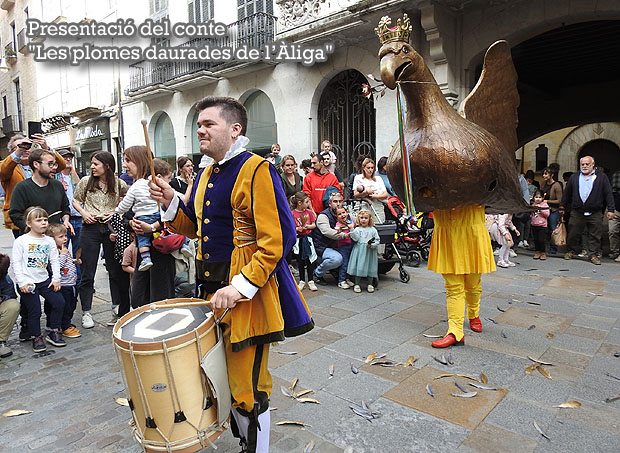 El dissabte 12 d'abril 2025, la Fal·lera Gironina va presentar al Saló de Descans del Teatre Municipal de Girona el seu nou conte "Les plomes daurades de l’Àliga", escrit per Jaume-Albert Cruset i il·lustrat per Marina Montenegro. La protagonista d’aquest nou conte és l’Àliga de Girona que desapareix després d’una tempesta i els gironins l’hauran de trobar. L’acte va ser presentat per la Laia Martín. Al final de l'acte, l’Àliga de Girona va interpretar el seu ball al mig de la plaça del Vi.