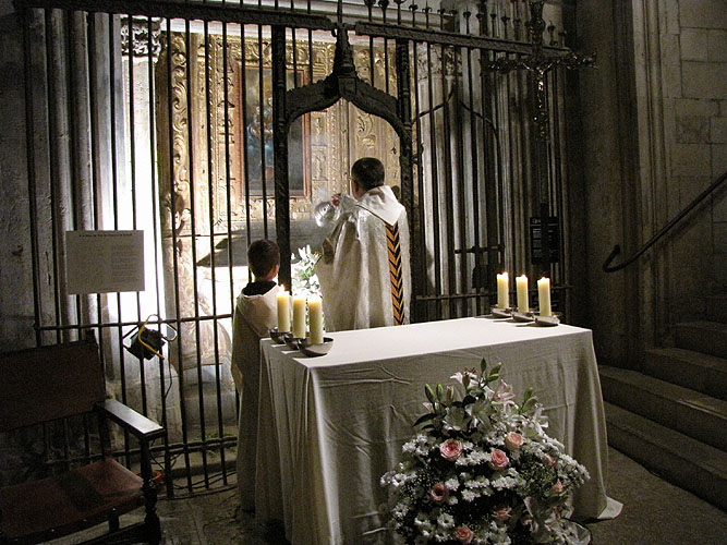 Capella de la Mare de Déu de Gràcia i de Bell-ull, claustre de la Catedral de Girona. Diumenge 8 de setembre de 2013 (Clicar damunt les imatges per ampliar-les) |