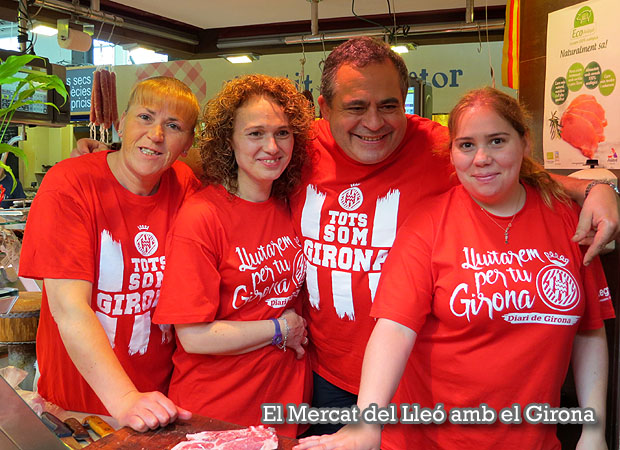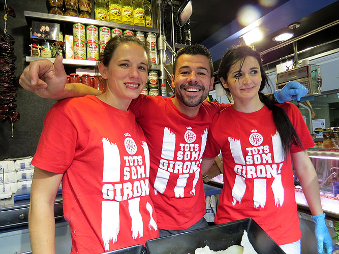 Els comerciants del Mercat l'han decorat amb banderes del Girona i s'ha posat samarretes del club de fútbol de la ciutat amb els eslògans "Tots som Girona", "Sense por, Girona" i "Lluitarem per tu, Girona".