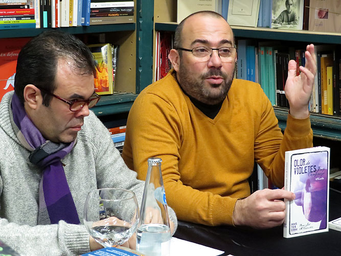 Dins el cicle de trobades amb escriptors gironins a la Llibreria Geli, que sota el títol de "Parlem de llibres?" convoca els dissabtes a la mateixa llibreria un escriptor gironí de naixement o d'"adopció" per parlar de la seva obra i del seu entorn, el dissabte 16 de gener 2016 va comptar amb Josep Campmajó, qui va comentar el seu procés creatiu, tot fent consideracions sobre l'art i el no art, el que l'aboca a l'escriptura, i "Olor de violetes", la seva primera novel·la, premi Just Manel Casero 2009.