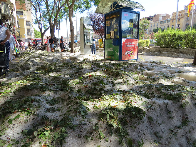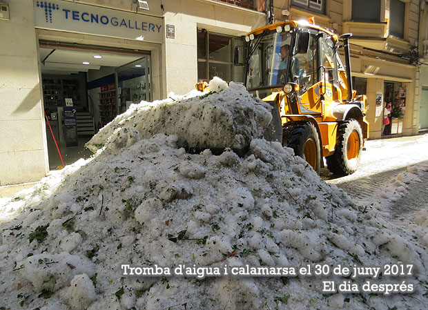 El divendres 30 de juny 2017 va caure a la ciutat de Girona una tromba d'aigua i calamarsa que va col·lapsar l'àrea urbana de la ciutat en pocs minuts. La intensitat de la pluja va arribar a puntes de 143 litres per metre quadrat al centre i de 102 al barri de Palau, i de 196 a Sarrià de Ter, xifres excepcionals en les darreres dècades. L'acumulació de pedra encara era visible a molts indrets, com el carrer Nou o la plaça Catalunya, i arreu s'observaven tasques d'extracció d'aigua de baixos i garatges. Aquest reportatge recull les imatges del "dia després", el dissabte l'1 de juliol, al matí.