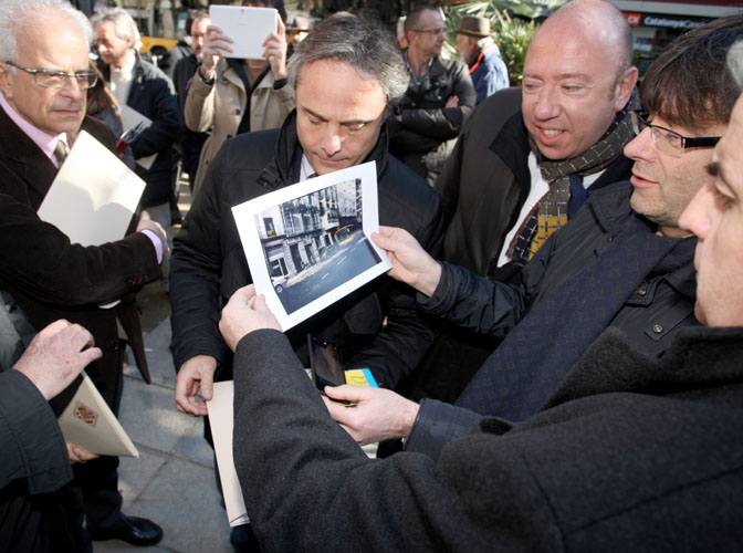 El 4 de febrer de 2014 es va commemorar el final de la Guerra Civil a la ciutat amb la col·loació d'una placa a la plaça del Marquès de Camps, amb l'assistència de l'alcalde, Carles Puigdemont, el president de la Diputació Joan Giraut, el senador Joan Bagué, el diputat Àlex Sáez, el vicepresident de la Diputació Xavier Soy, la directora dels Serveis Territorials de Justícia de la Generalitat Isabel Ruiz, el director dels Serveis Territorials de Territori i Sostenibilitat de la Generalitat Josep Cortadellas, el director dels Serveis Territorials de Cultura de la Generalitat Antoni Baulida, el vicepresident de la Cambra de Comerç, Josep Maria Caula, la tinent d'alcalde Maria Àngels Planas, els portaveus dels grups municipals de CiU, PSC i CUP, Carles Ribes, Pia Bosch i Jordi Navarro, els regidors Eduard Berloso, Joan Alcalà i Roser Urra i altres regidors com Glòria Plana, Joaquim Bonaventura i Carlos Palomares. (Fotos: Lluís Serrat i autor desconegut. CRDI - Ajuntament de Girona).