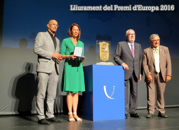 El Consell d’Europa ha distingit Girona amb el Premi d’Europa d’aquest 2016, el màxim guardó que lliura aquesta institució europea anualment i que té com a objectiu reconèixer el foment de l’ideal europeu de les ciutats del continent. Girona s’ha imposat a les altres candidatures d’aquesta edició dels premis: les ciutats alemanyes de Bamberg i Sinzing, la localitat ucraïnesa d’Ivano-Frankivsk i el municipi polonès de Lublín. El divendres 8 de juliol 2016 es va fer el lliurament oficial al Teatre Municipal amb la participació entre d'altres, de Jean Claude Frécon, i Pedro Agramunt, del Consell d'Europa, i Raül Romeva, Jordi Xuclà i l'alcaldessa Marta Madrenas.