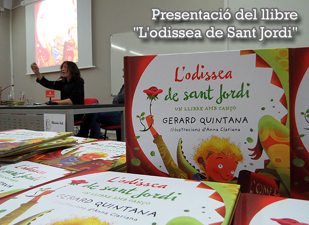 Síntesi: El 27 de març 2015 es va presentar a la Casa de Cultura de Girona el llibre "L'Odissea de Sant Jordi. Un llibre amb cançó" de la que és autor del text i la música Gerard Quintana, i de les il·lustracions, Anna Clariana. A l'acte va participar Quintana, qui va explicar el conte, mentre la il·lustradora realitzava en viu un dibuix al·lusiu al llibre. L'explicació va anar seguida de l'audició de la cançó composta especialment per Gerard Quintana. Finalitzada la presentació el dibuix va ser sortejat entre la mainada que va assistir a l'esdeveniment.