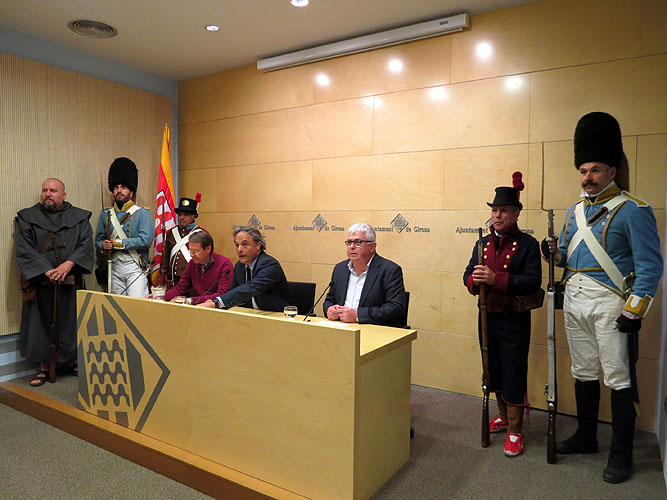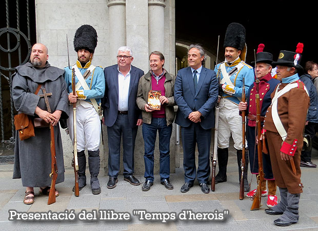 Síntesi: El dimarts 19 d'abril 2016, organitzat per la Llibreria Geli, va tenir lloc la presentació del llibre "Temps d'herois. El setge de Girona de 1809", de Gerard Bussot, a la Sala Miquel Diumé. L'acte va ser presidit pel regidor de Cultura de l'Ajuntament de Girona, Carles Ribas, amb les intervencions de l'historiador i professor de la UB, Agustí Alcoberro, i de l'autor de l'obra. Varen acompanyar la presentació membres de l'associació de recreació històrica "Amics de la Girona napoleònica" uniformats de forma adient a l'època recreada a la novel·la històrica.