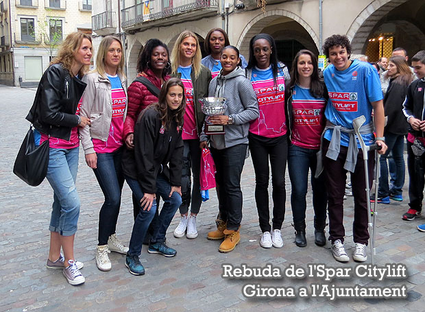Síntesi: El diumenge 24 d'abril 2016 l'Ajuntament de Girona va organitzar una rebuda a la plaça del Vi i al Saló de Plens a l'equip de bàsquet femení Spar Citylift Girona, que ha acabat amb un títol, el de la Supercopa, i amb el notable paper en el seu debut a l'Eurolliga, a banda d'un molt meritori subcampionat de Lliga. Més de 350 persones, algunes acabades d'arribar de Salamanca, on s'havia jugat la final de la Lliga, van voler estar al costat de l'equip omplint primer el Saló de Plens de l'ens municipal, i poc després la plaça del Vi.