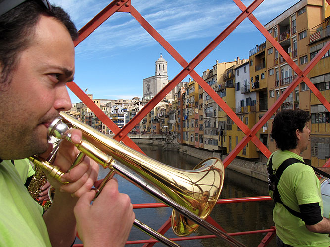 Cercavila de Girona Marxing Band pels carrers del Barri Vell.