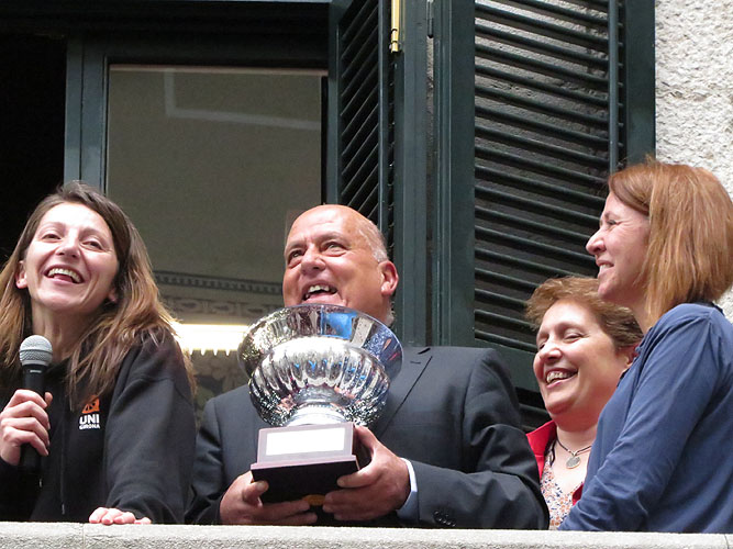 Rebuda de les jugadores de l'Spar Citylift Girona, subcampiones de Lliga, a l'Ajuntament i a la plaça del Vi