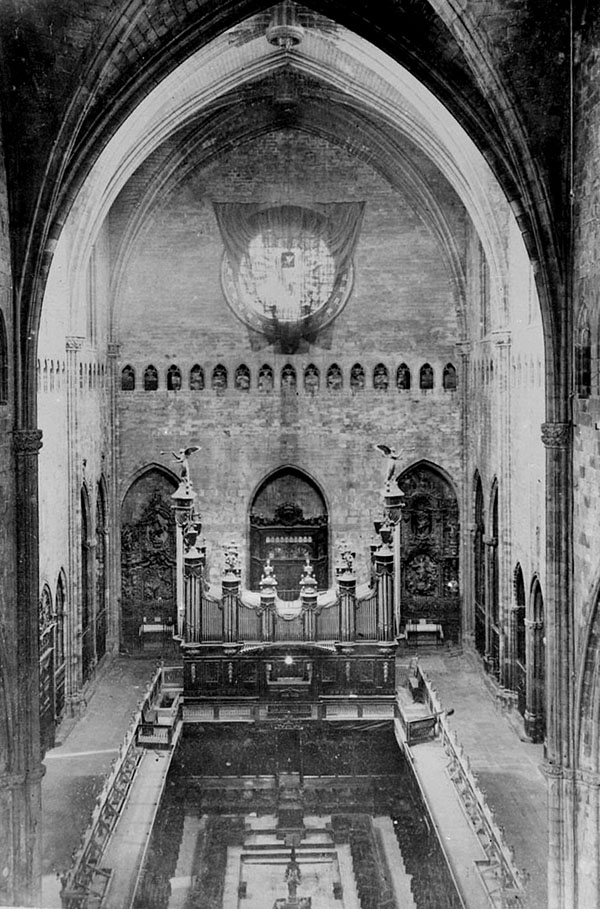 ![]() (Ampliar) - Interior de la Catedral de Girona. En primer terme, l'orgue i el cor. 1900-1930. Autor desconegut. CRDI - Ajuntament de Girona. ![]() (Ampliar) - Orgue de la Catedral de Girona. 1920-1930. Autor desconegut. CRDI - Ajuntament de Girona. ![]() (Ampliar) - Nau central de la Catedral de Girona. En primer terme, l'orgue i el cor. 1910-1920. Josep Thomas Bigas. CRDI - Ajuntament de Girona. ![]() (Ampliar) - Detall del cor de la Catedral de Girona. 1960. Josep Buil Mayral. CRDI - Ajuntament de Girona. ![]() (Ampliar) - Orgue de la Catedral de Girona. 1930-1936. Autor desconegut. CRDI - Ajuntament de Girona. ![]() (Ampliar) - Orgue de la Catedral de Girona. 1911-1930. Autor desconegut. CRDI - Ajuntament de Girona. ![]() (Ampliar) - Orgue de la Catedral de Girona. Abans 1930. Montaigne. Université de Bordeaux. |