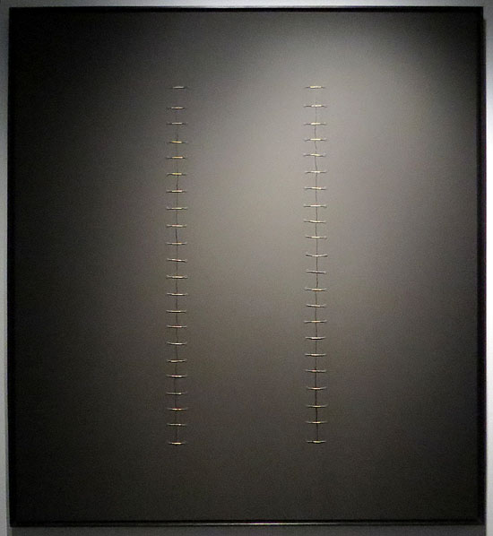 (Ampliar) - Doble sutura. 2004. Acrílic i llautó sobre tela. Col·lecció Fundació Vila Casas, Barcelona.