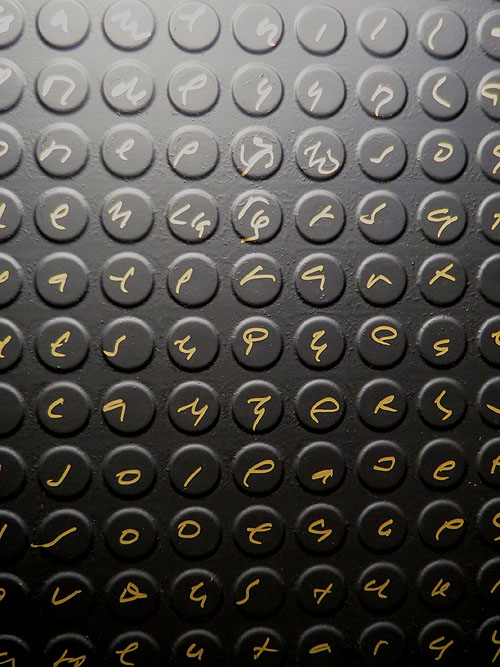 (Ampliar) - Presència MCA, MCB, MCC (Detall). 2016. Acrílic i oli sobre cautxú. Col·lecció particular.