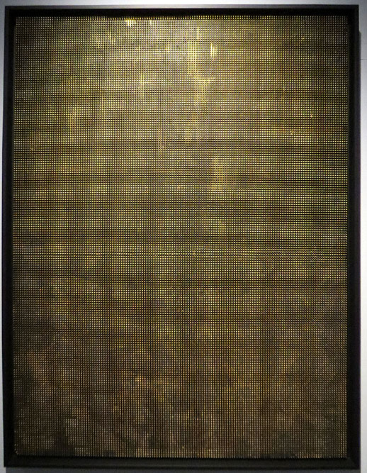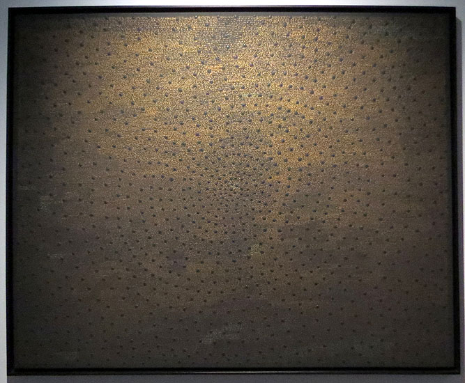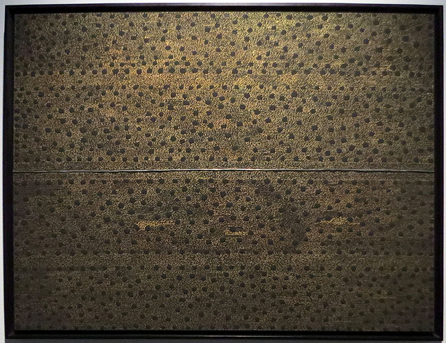 (Ampliar) - Camps daurats. 2017. Oli i cautxú sobre fusta. Col·lecció particular.