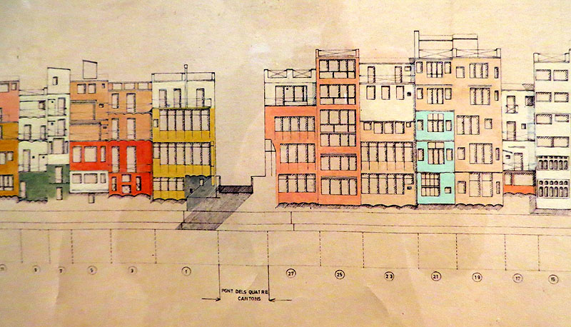 (Ampliar) - Projecte complet Cases del riu. 1983. Aquarel·la sobre paper. Fragment. Col·lecció particular. |