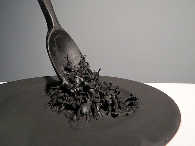 (Ampliar) - The war lunch. 1997. Porcellana, fusta, silicona i acrílic. Col·lecció particular.