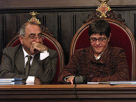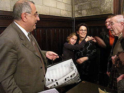 L'alcaldessa Anna Pagans, fullejant el llibre.
