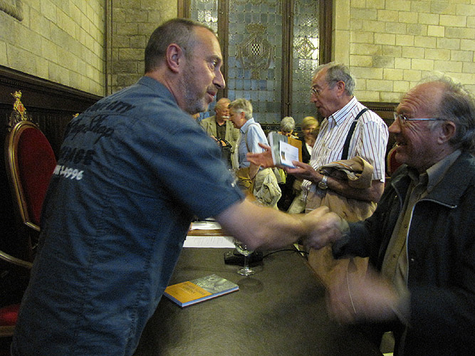 El saló de plens de l'ajuntament de Girona va ser el marc de la presentació del llibre Bombes sobre Girona. La defensa passiva a la Guerra Civil (1936-1939): barricades, trinxeres i refugis antiaeris, volum número 47 de la col·lecció Història de Girona, i és obra de Jaume Prat i Jordi Pericot, que van ser presents en l'acte de presentació d'ahir, en què també va intervenir l'alcalde, Carles Puigdemont. ![]() (Ampliar) - Presentació del llibre a càrrec de Joan Boadas i Raset, Arxiver Municipal de Girona.El llibre és un estudi i anàlisi de les barricades, trinxeres i refugis antiaeris en els quals els habitants de la ciutat es van resguardar de la pluja de projectils que va caure durant els bombardejos a què l'aviació feixista va sotmetre la ciutat durant la Guerra Civil. El llibre té l'origen en la preparació de les visites guiades pel cicle Trepitja la Història, organitzat pel Museu d'Història de la ciutat i la investigació que han dut a terme, sobre el terreny, documentalment i amb converses amb testimonis, els seus autors. ![]() (Ampliar) - El Saló de Plens durant la presentació.