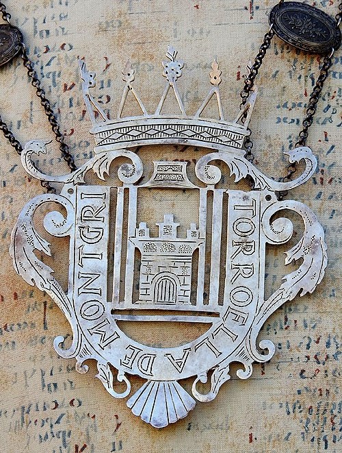 (Ampliar) - L'escut de Torroella al pit del gegant Porrer de Torroella de Montgrí.