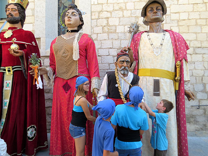 (Ampliar) - Gegants i gegantó de Torroella de Montgrí preparats per la cercavila.Els gegants de Torroella de Montgrí.