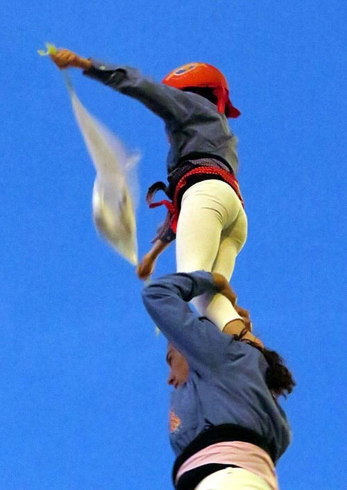 (Ampliar) - El pilar dels Marrecs de Salt, carregat per castelleres.