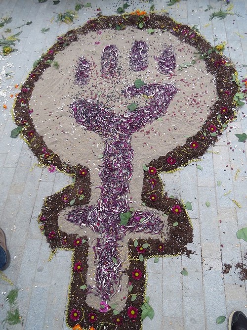 (Ampliar) - Performance a la plaça de la Independència. A la plaça de l'U d'octubre de 2017, representants de partis polítics, sindicats i col·lectius socials i culturals, varen escenificar una performance on llegien pancartes al·lusives a la commemoració i a les reivindicacions feministes, unes castelleres dels Marrecs de Salt van fer un pilar, van cantar el grup musical Les Anxovetes, es va llegir una poesia i hi va haver actuacions musicals de les raperes Skata 23, Mc Sylvia, Alba MsDeathX.