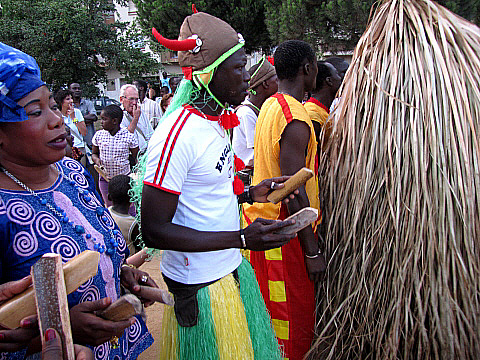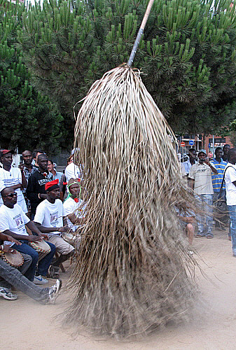 Màscara originària de la Casamance, és present en tot l'espai senegambià. A més del seu component de cultura tradicional, posseeix també les virtuts de jutge que garanteix l'ordre social. Com a personatge central del ritual, el Kumpo és un iniciat que porta una màscara feta de fibra de bambú i sobre el seu cap un llarg bastó punxegut que té significacions precises segons el lloc on actua. ![]()