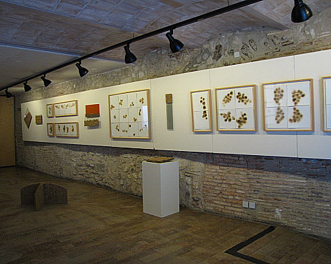 En primer lloc, el treball que ha realitzat utilitzant directament la planta de la Mediterrània, que se'ns presenta encolada damunt restes de mobiliari i, en ocasions, combinada amb vidre.