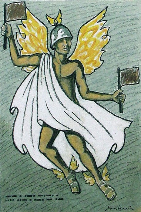 ![]() 10 de maig 2014. Hermes. Emmarcat en els actes amb motiu del centenari de l'escriptor, l'associació Amics de la UNESCO de Girona amb la col·laboració de l'associació de comerciants del Mercat del Lleó, organitza mensualment una proposta l'objectiu de la qual és apropar l'escriptor al gran públic, a partir del llibre de Salvador Espriu "Les roques i el mar, el blau". A partir d'aquest text, Amics de la UNESCO de Girona ha convidat a 12 socis i col·laboradors escriptors i artistes, a fer la seva pròpia lectura de dotze capítols; al cap d'un any es disposarà de dotze capítols nous i dotze il·lustracions, que seran llegits i presentats, un cada mes coicidint en el dia 10, en l'activitat Espriu al Mercat que va del 10 de juliol 2013 al 10 de juliol 2014. ![]() (Ampliar) - Mercè Huerta i Narcís-Jordi Aragó, autors, respectivament, de la il·lustració i del text.Hermes. Del llibre "Les roques i el mar, el blau", d'Espriu "És aquí un jove amb les espatlles alades, disposar a calçar-se les alades sandàlies que faran el seu vol més ràpid. Amic del vent, tal vegada essència del vent, ampara els ramats, els camins, els mercaders i els lladres, tan fàcils de confondre. Porta a l'acte missatges del seu pare on convé. És eloqüent, de paraula no gens entrebancada, persuasiva. Posseeix el caduceu, una vareta d'or i dos barrets de viatger i de pastor. (...) És incansable, perquè practica sense parar la cursa. Els efebus atlètics l'invoquen i el veneren, el marrà l'acompanya. El fal·lus (...) és un dels seus símbols, perquè l'amatent guarda té cura que homes i folcs escampin i asseguin per sempre el triomf de la vida. (...) Tucídides és un dels més grans escriptors que mai hi hagi hagut. Si per aquest episodi el llegiu o el rellegiu, no podreu deixar de banda, mentre no l'haureu acabada, la seva obra sencera. I tot això, que és molt, guanyareu contra el tedi i l'espessa estultícia que tant ens escurcen les hores del sobri, net, dessinteressat plaer intl·lectual, que mai no ens enganya. I us sentireu més propers a Déu. (...) Déu, alhora tot i no res, comprensiu, sense límits, del tot i del no-res. Subtilíssim agulló del pensament, refusem amb menyspreu a reduir-lo a la blanesa d'una qualsevol affecció per a nosaltres, immens en grau extrem, distant, personal, impassible, inconcebible, indicible, Dé, acte pur, "s'estima a si mateix amb un amor intel·lectualment infinit", i una dura condició diamantina permet de davallar un a un, sense rebel·lia i sense por, els esglaons del pou del silenci". Hermes, de Narcís-Jordi Aragó