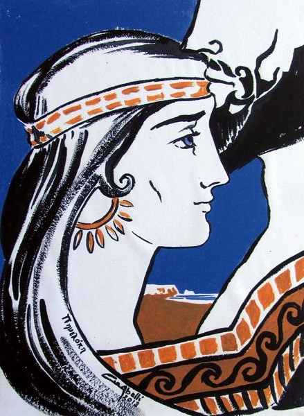 (Ampliar) - Núria Martí i Constans, autora del text.Penèlope. del llibre "Les roques i el mar, el blau", d'Espriu Després de tornar-se a conèixer i de dormir, marit i muller, quan el palau era fosc i en silenci, varen conversar. L'un i l'altre trobaven difícil resumir en unes quantes hores el que havien passat, i sobretot el que havien pensat, durant aquells últims vint anys, i més potser el viatger que tant havia navegat, naufragat i viscut. Tal vegada, perquè a la dona, sense moure's de casa, li havia vagat de teixir, desteixir i cavil·lar. Prudents i sagaços, sabien el punt dolç del que convenia que es contessin, del que importava de callar i del que els abellia d'oblidar. Acabada la prova del llit, ella se li havia ofert, submisa i sàviament quasi nua sota la llum vacil·lant de les teies, (...). Aquesta i l'home, (...), s'avenien en el llarg plany i en els comptes de les enormes despeses ocasionades pels pretendents, mentre arribava a la fi la claror de l'alba, i el feliç matrimoni emmudia per destriar, entre els primers cants dels ocells just desvetllats, els avisos plens de seny d'una rara oreneta.