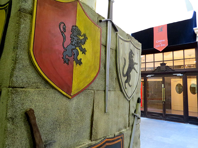 El dimarts 26 d'abril 2016 es va estrenar a Girona el primer episodi de la sisena temporada de la sèrie "Joc de Trons" de la que algunes seqüències s'havien rodat a Girona. ![]() (Ampliar) - Decoració a l'accés al vestíbul del Teatre Municipal.