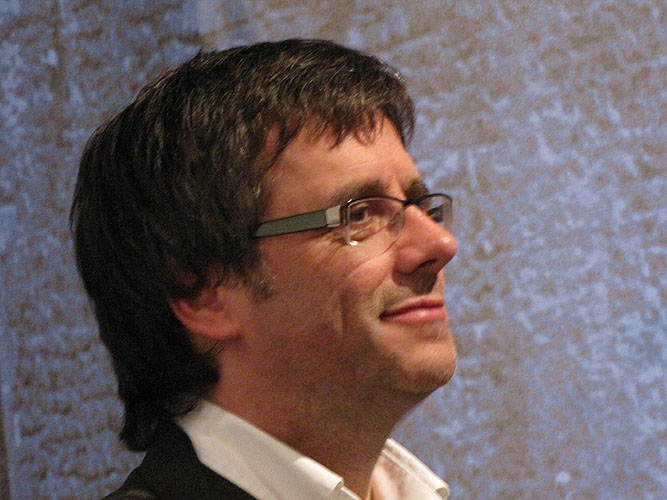 (Ampliar) - Carles Puigdemont, alcalde de la ciutat, durant la seva intervenció.