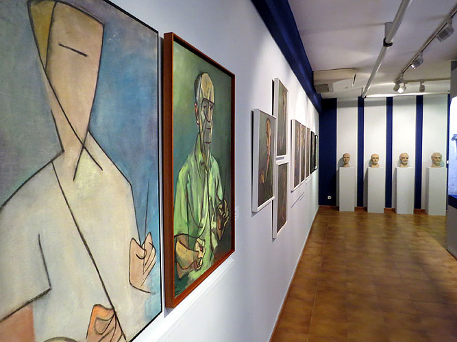 La mostra del Museu d’Art, amb el títol "Divorcis amb la tradició", centra la mirada en el procés de creació de l’artista i presenta més d’una setantena d’obres, entre les quals destaca l’escultura en ferro de Sant Andreu i una selecció d’autoretrats, dibuixos i escultures així com maquetes i dibuixos preparatoris d’algunes de les seves obres d’encàrrec. ![]() (Ampliar) - Una sala de l'exposició "Divorcis amb la tradició".