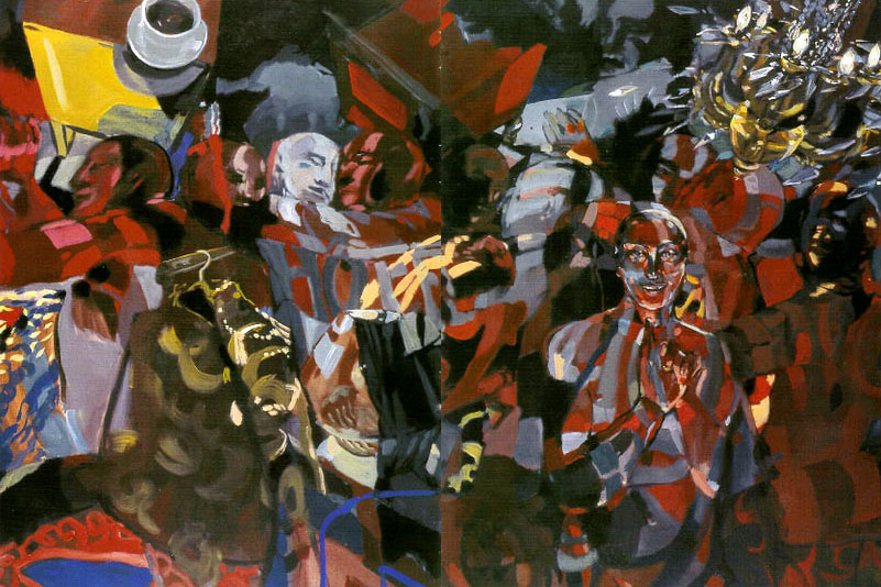 De les 70 obres seleccionades, molt diverses en estils, tècniques i formats, la majoria procedeixen de les nombroses exposicions organitzades a les sales municipals d'exposicions de Girona, però també n'hi ha deu que provenen de l'Escola Municipal d'Art, i algunes han estat donades o cedides en dipòsit pels artistes, s'han comprat a Espais i altres galeries, han estat encarregades com a cartells de Fires, etc. ![]() (Ampliar) - Cambra. Roser Oliveras Oliver, 2003. Díptic. Pintura sobre tela. Obra exhibida a l'exposició. Gentilesa de l'autora. |
