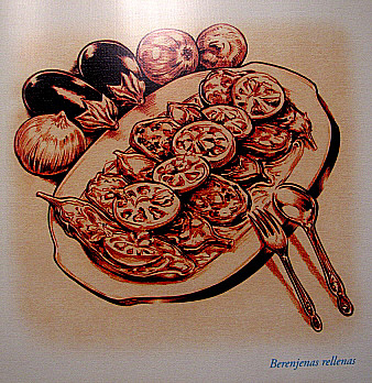 Berenjenas rellenas. Imatge de l'exposició Harmonies de Blau i d'Ocre. Ritme vital i festiu sefardita .