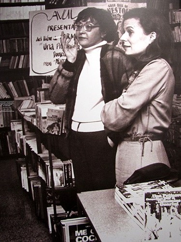 (Ampliar) - Llibres parlats. 30 anys de presentacions de llibres. Carme Riera i Dolors Oller presentant "Una primavera per a Domenico Guarini", de Carme Riera. Gener de 1983.