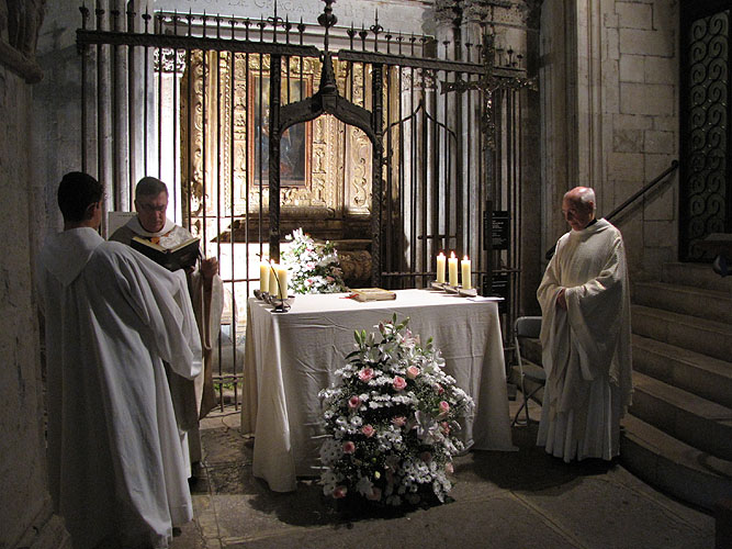 ![]() Diumenge 8 de setembre 2013 El diumenge 8 de setembre 2013 es va celebrar la Festa de la Mare de Déu de Gràcia i de Bell-Ull a la capella que li és dedicada als Claustres de la Catedral, amb Cant de Vespres i Solemne Missa Major Conventual, cerimònia que va finalitzar amb la benedicció i repartiment entre els assistents de pomells d'herbes aromàtiques. ![]() (Ampliar) - Capitell del claustre i capella de la Mare de Déu de Grà i de Bell-Ull